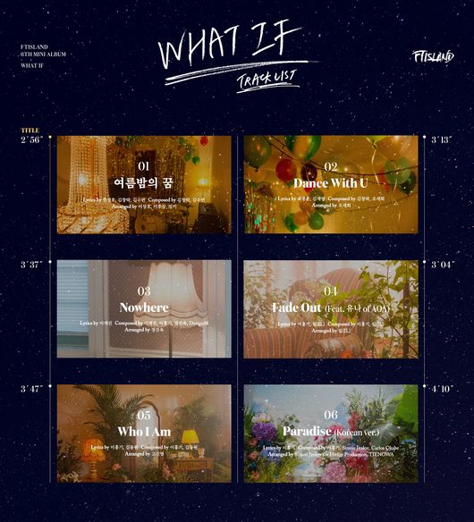 FT아일랜드의 소속사 FNC엔터테인먼트는 18일 공식 SNS를 통해 미니 6집 ‘왓 이프(WHAT IF)’의 트랙리스트를 공개했다.