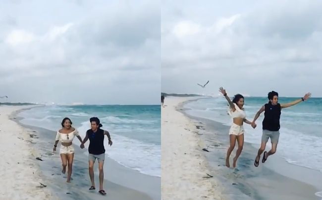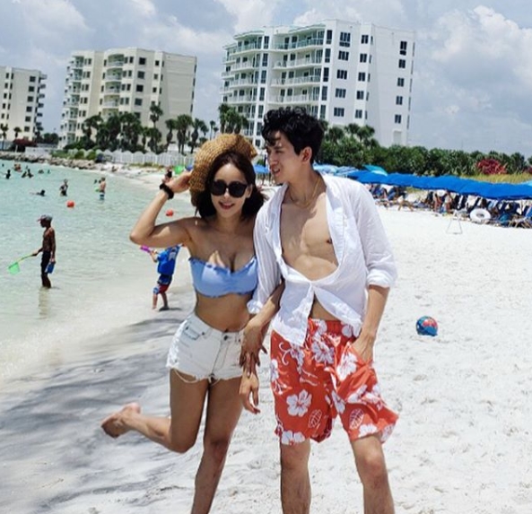 사진 속 미나♥류필립은 미국 플로리다의 데스틴 해변가의 모래사장을 같이 거닐며 행복한 시간을 보내고 있다. 두 사람은 이 모습을 슬로우 모션으로 남겨 시선을 끌었다.