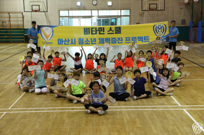 배방초에서 진행된 비타민 스쿨에서 아산의 부주장 이한샘과 골키퍼 최봉진이 4학년 총 30명을 대상으로 축구 기본기 수업, 미니 축구 게임, 신체 활동 프로그램 순서로 실시했다.