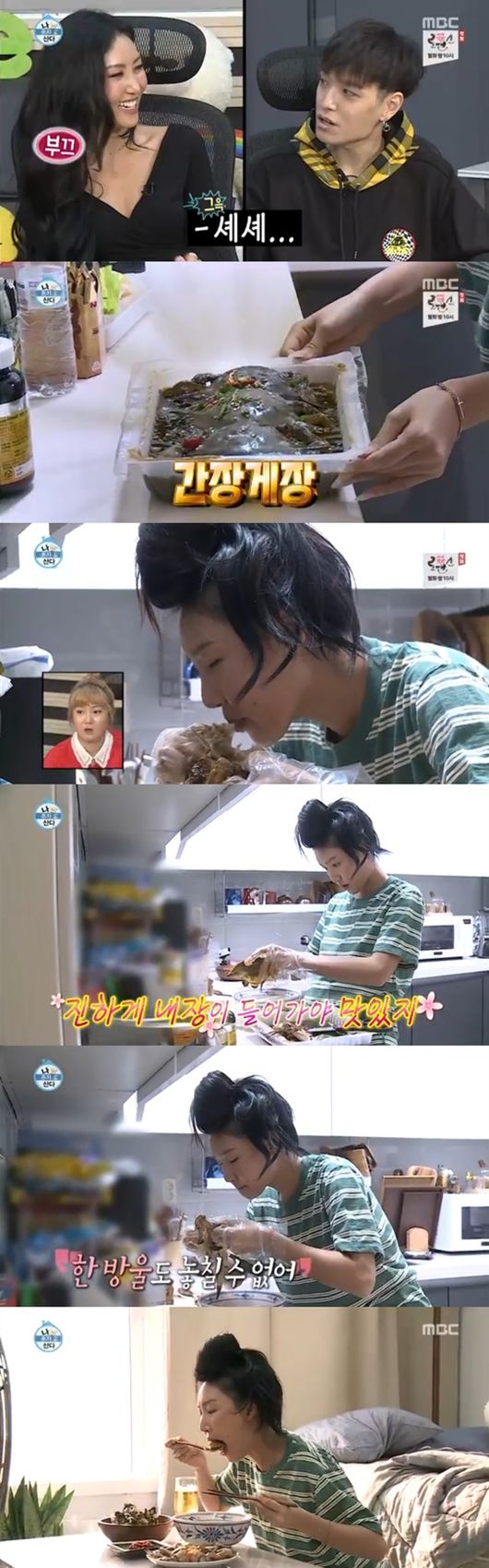 화사는 시험에 떨어진 후 간장게장을 시켜 먹었다. 그는 "요즘에 계속 촬영이 이어져 맛있게 밥을 즐길 시간이 없었다. 밤마다 '간장게장'을 외치며 잤다. 이날만 기다렸다"며 즐거워했다. 그는 "미쳤다"고 외치며 간장게장 살을 발라 먹었다. 그의 간장게장 먹방에 멤버들은 "간장게장 회식 가자"고 간장게장 홀릭에 빠졌다.