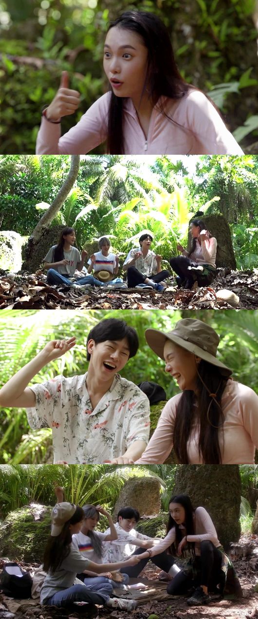 공개된 사진 속 한슬이 엄지 손가락을 치켜 들며 한껏 흥이 오른 모습 시선을 모은다. 정혜성-루다-권현빈-한슬이 먹거리 채집을 위해 함께 모인 가운데, 정혜성이 “우리 게임할까?”라며 게임을 제안한 것.