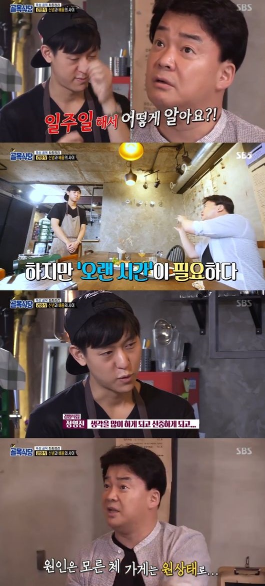 백종원은 결국 폭발하고 말았다. 필동 스테이크집의 레시피 중 자신의 취향에 맞는 방법만 쏙 골라 변형한 경양식집 사장은 “힘들게 만든 레시피를 그대로 쓸 수는 없었다”고 변명했으나, 백종원은 “그럼 배우질 말았어야지. 말장난 하는 거다”라며 화를 내고 말았다. 백종원은 가르쳐준 것들이 하나도 반영되지 않은 경양식집을 보며 “결국 모두 사장님 스타일이다. 가장 큰 문제는 고집이 아니라 배운 걸 시도조차 안 하는 것”이라고 지적했다.