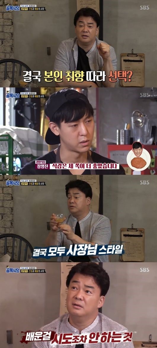 경양식집의 막무가내 고집에 백종원도 폭발했다. 솔루션 마지막날 돈가스와 함박스테이크 맛을 보던 백종원은 "왜 필동 레시피를 쓰지 않았냐. 솔직하게 말해보라"고 말했고, 경양식집 사장은 "그분들이 열심히 만든 레시피를 그대로 쓸 수는 없었다"고 변명했다. 이에 백종원은 "그럼 배우질 말았어야지. 지금 말장난 하는 것"이라며 "결국 사장님 스타일이다. 가장 큰 문제는 고집이 아니라 배운 것을 시도조차 안 하는 것"이라고 일침했다.