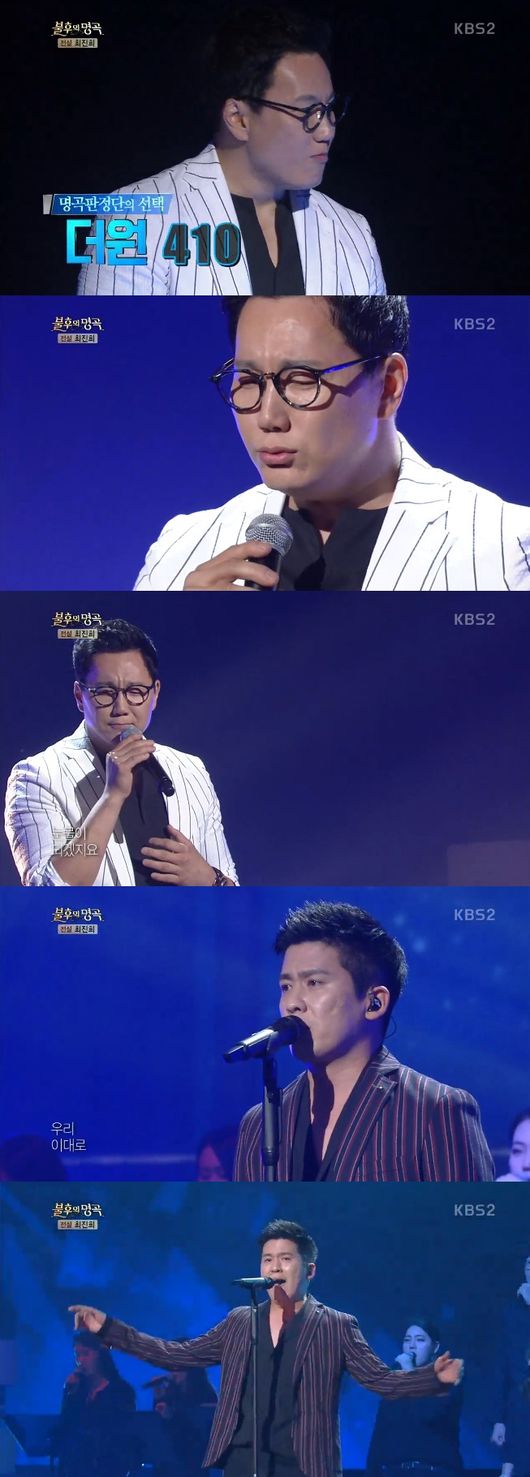 가수 더원이 첫 번째 무대부터 410점이라는 고득점으로 홍경민을 꺾고 1승을 차지했다.
