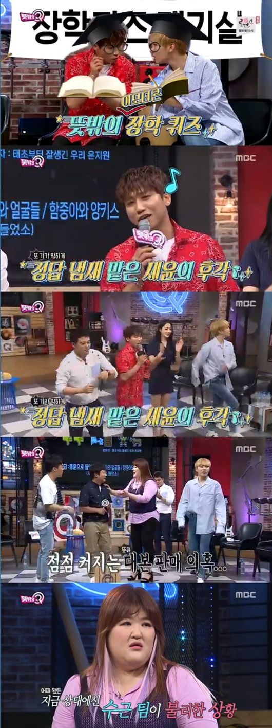 '뜻밖의 Q'의 유세윤이 신들린 정답 세례를 보였다.