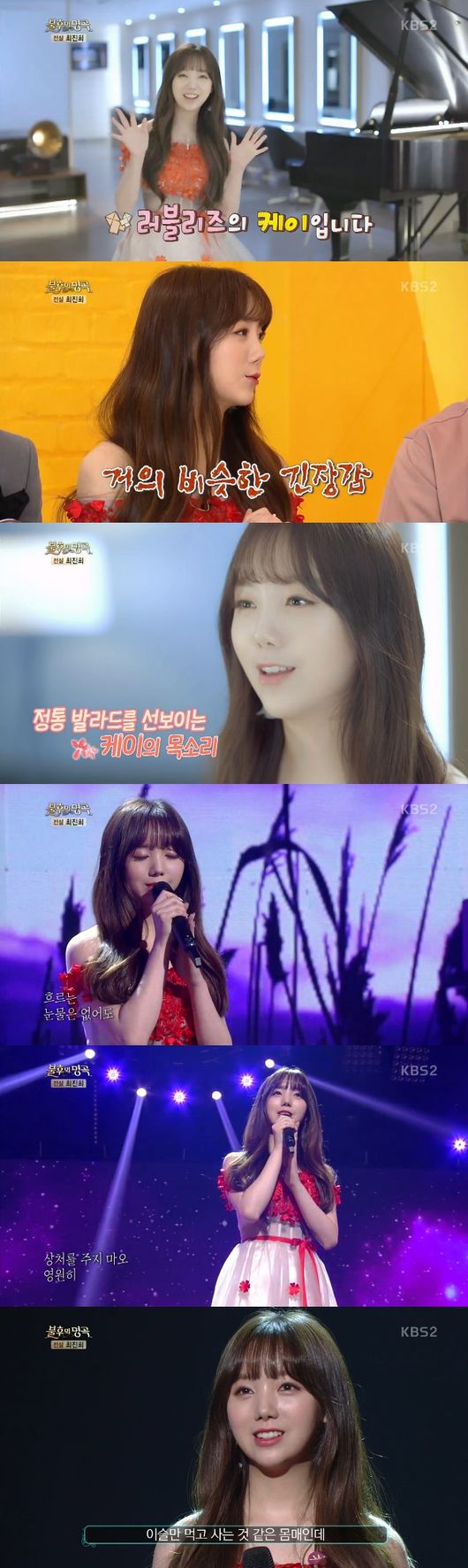 그룹 러블리즈의 케이가 ‘불후의 명곡’ 첫 단독 출연에서 보컬 실력을 제대로 뽐내며 주목을 받았다.