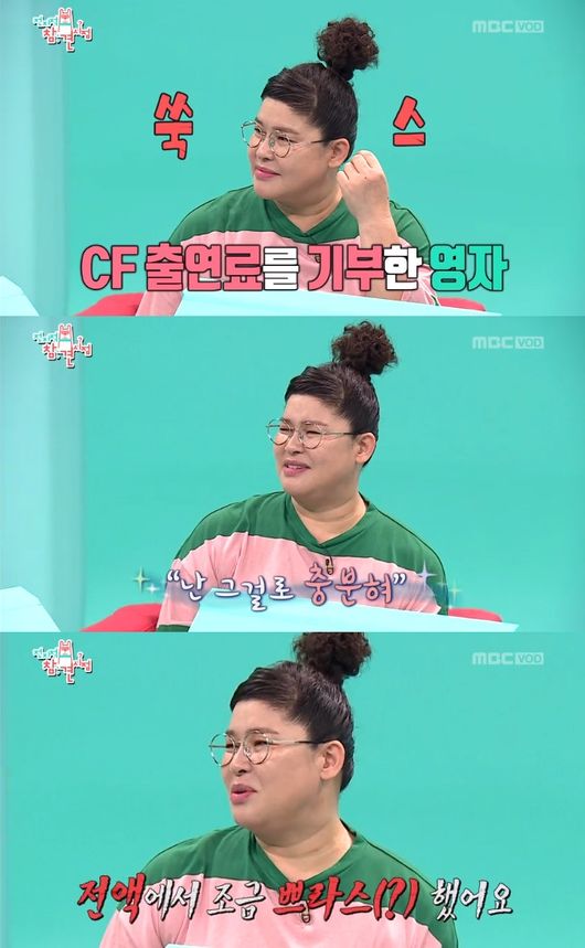 매니저와 함께 동반 CF를 찍은 이영자가 이번에는 출연료를 전액 기부했다는 소식으로 많은 이들에게 훈훈한 감동을 안겼다. '전참시'로 시작된 '영자의 전성시대'는 여전히 진행 중이다.