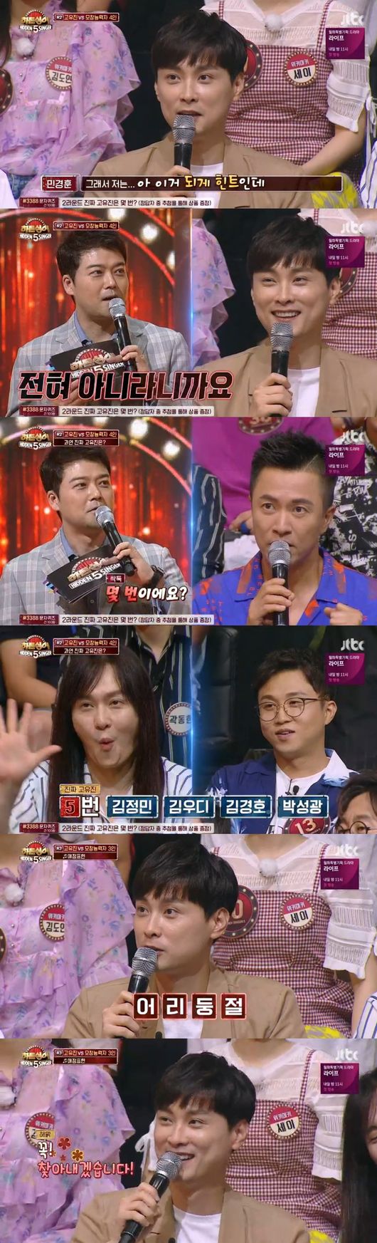 MC전현무는 민경훈 편 못지 않게 남자출연자들이 출연 요청을 쇄도했다고 했다. 원조가수 3인방은 "CD를 떠올리면서 불러야 한다"며 팁을 전수, 하지만 고유진은 "제가 알아서 하겠다"고 말해 웃음을 안겼다.