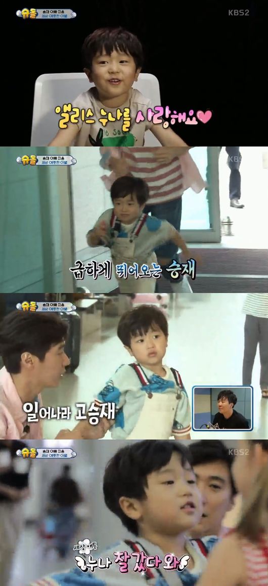 '슈돌'의 고승재가 5살이라고는 믿을 수 없는 매너와 애틋함을 보여줬다. 호주로 한 달간 떠나는 앨리스를 위해서 공항 배웅을 선택한 승재는 자신의 마음을 표현하는데 솔직했다. 5살이지만 벌써부터 직진남으로 매력을 보여줬다.