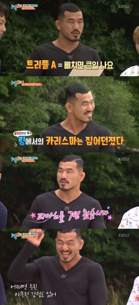 의욕 넘치는 배명호는 첫 등장 만으로 매력넘치는 캐릭터를 보여줬다. 꽂꽂이를 즐기는 김동현 못지 않은 반전 매력을 지닌 격투기 선수로 주목받기 충분했다.