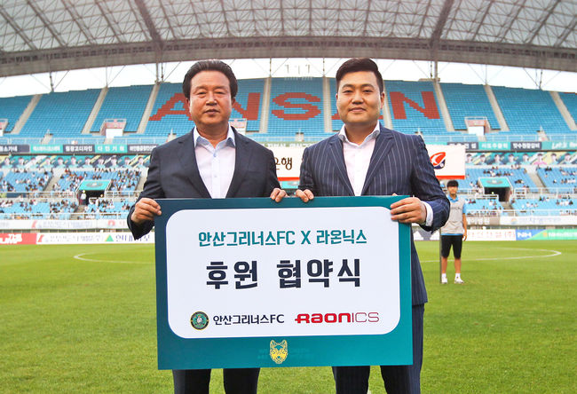 안산 그리너스 FC가 22일 안산 와~스타디움 홈경기에서 ‘라온닉스’와 후원 협약을 체결하였다.