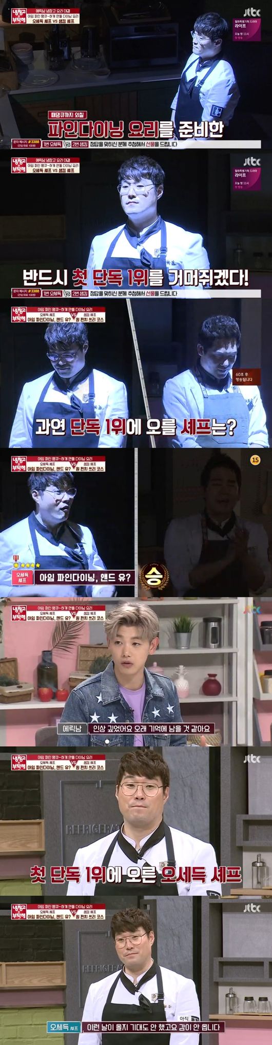 이로써 샘킴을 누르고 1위를 석권, 첫 단독1위를 거머쥐었다. 파죽지세 3연승까지 차지한 오세득은 "이런 날 올지 생각도 못했다"며 겸손한 모습을 보였다. 무엇보다 '냉부해' 1인자가 샘킴에서 오세득으로 바뀌는 역사적인 순간이 눈길을 끌었다. /ssu0818@osen.co.kr