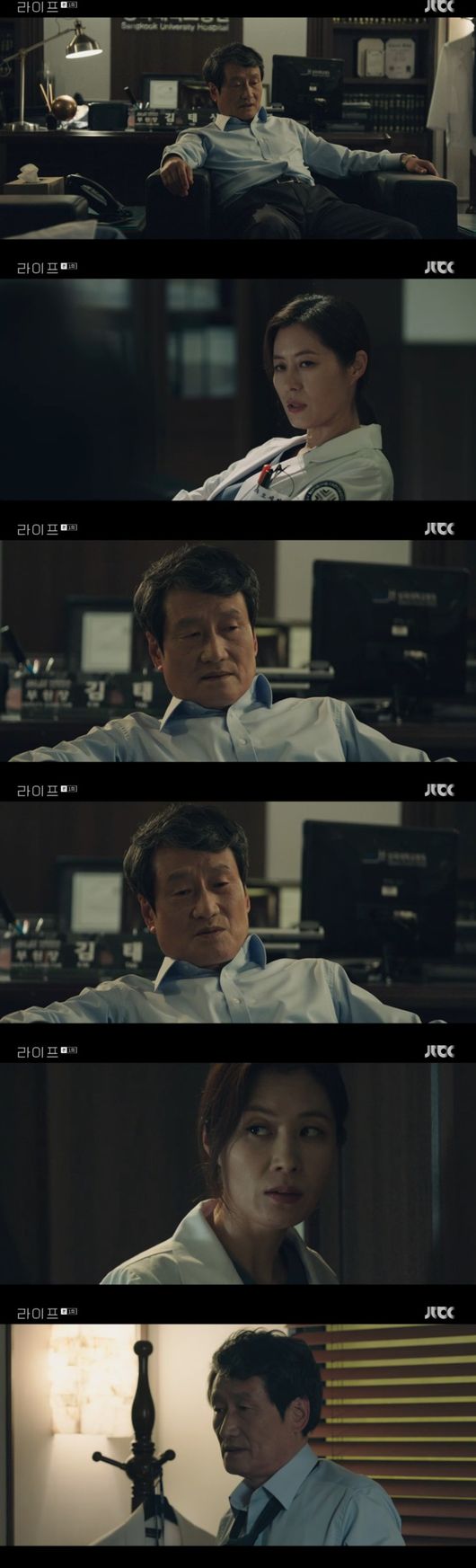 23일 방송된 JTBC 월화 드라마 '라이프(연출 홍종찬, 임현욱,극본 이수연)'에서는 보훈(천호진 분)이 첫회부터 사망했다. 유력 용의자로 진우(이동욱 분)은 태상(문성근 분)을 의심했다.