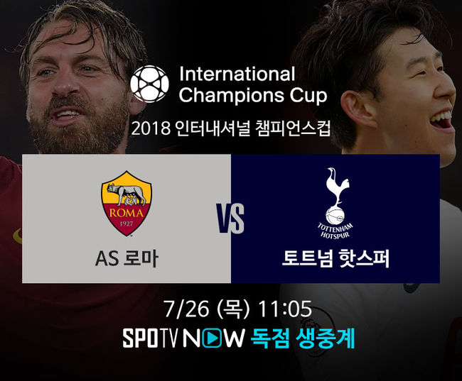 ‘우리흥’ 손흥민의 토트넘이 2018 인터내셔널 챔피언스컵(이하 ICC)서 AS로마를 상대한다. 손흥민은 ‘선발 출전’과 ‘공격 포인트’라는 두 마리 토끼를 노린다. 손흥민의 활약 여부를 알 수 있는 AS로마와 토트넘의 경기는 오는 26일 오전 11시 5분(한국시간) 만나볼 수 있다.