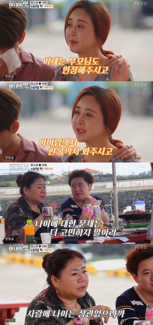 다음 날 함소원은 다시 한 번 시어머니의 사랑을 느끼며 크게 감동 받았다. 더 이상 나이 차이에 대한 걱정을 하지 말라는 것. 함소원은 사랑의 마음을 담은 노래를 부르던 중 갑자기 눈물을 흘리며 "진화가 한국에 오는 것에 고민이 많았다. 너무너무 사랑하지만 나와 결혼해서 힘들면 어쩌나 하는 마음이었다"고 솔직한 심경을 전했다.