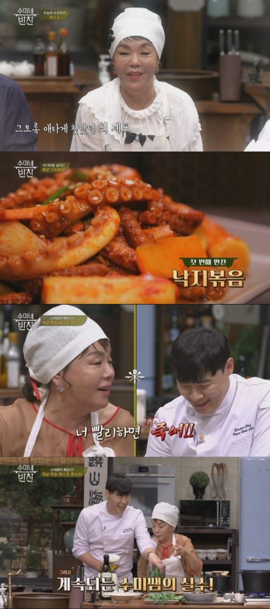 25일 저녁 8시10분 방송되는 tvN 예능 '수미네 반찬' 8회에서는 이열치열이 가능한 매콤한 '낙지볶음'편이 방송된다. 김수미는 어린 시절, 아버지가 집에서 키우던 소가 더위에 쓰러지자 낙지를 먹였던 일을 추억하며 한여름 기력을 회복시켜 줄 매운 낙지볶음을 선보인다. 낙지볶음의 새빨간 비주얼은 시청자들의 시선을 강탈할 예정.