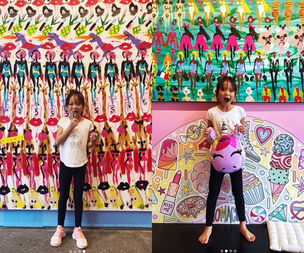 사진 속에서 추사랑은 그림 앞에서 포즈를 취하고 있는데, 특히 올해 8살이라고는 믿기지 않는 추사랑의 긴 다리가 감탄을 자아낸다.