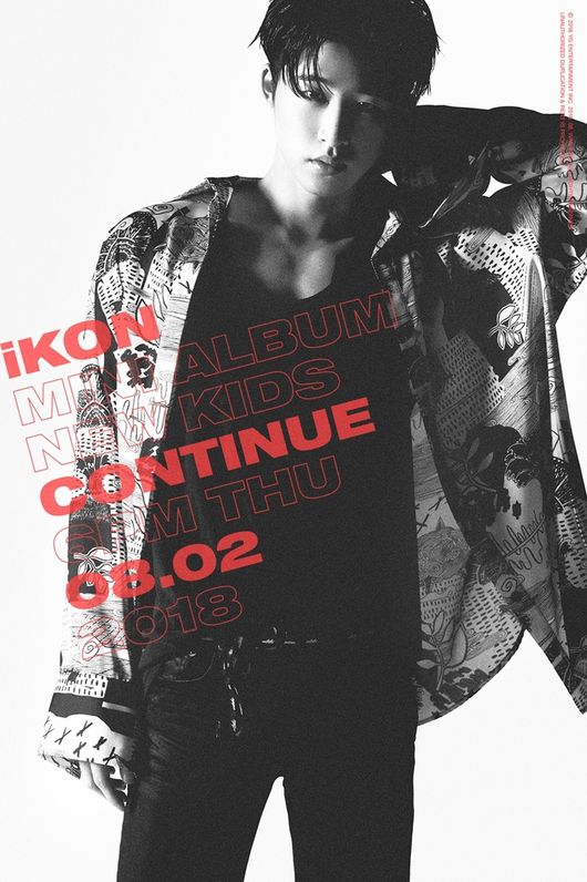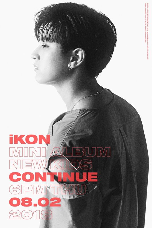 'iKON MINI ALBUM NEW KIDS CONTINUE 6PM THU 08.02'라는 문구는 아이콘의 새 미니앨범 이름인 'NEW KIDS:CONTINUE'와 앨범 발매일을 알리며 관심을 모았다.