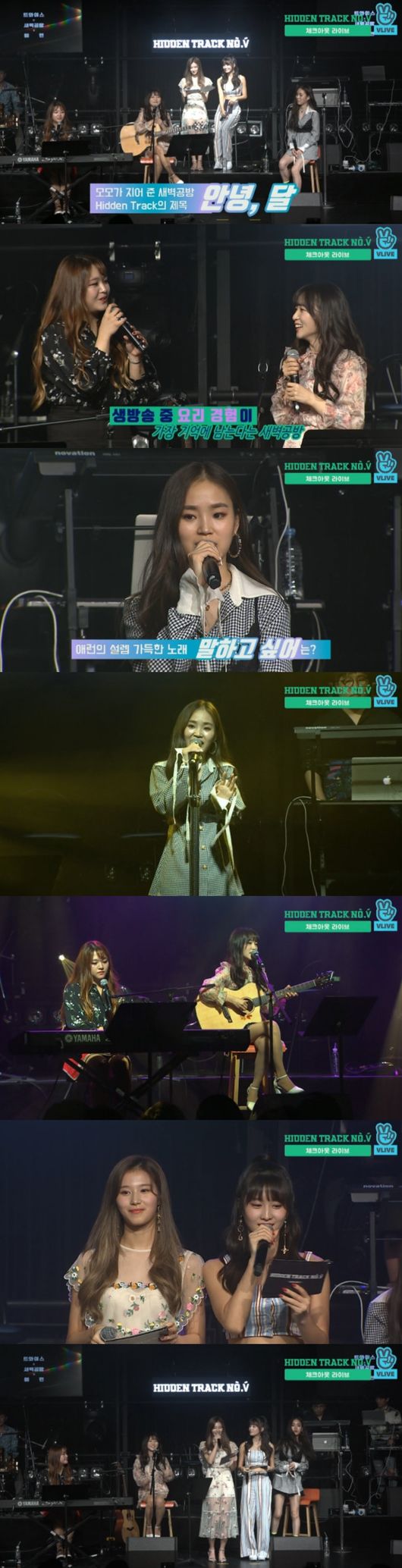 지난 25일 포털사이트 네이버 V라이브를 통해 방송된 ‘Hidden Track No.V TWICE 모모,사나 X 애런 X 새벽공방 체크아웃라이브’에서는 6·7월의 키맨 트와이스의 모모, 사나와 라커 새벽공방, 애런이 라이브 무대와 함께 음악에 대한 이야기를 나누는 모습이 그려졌다.