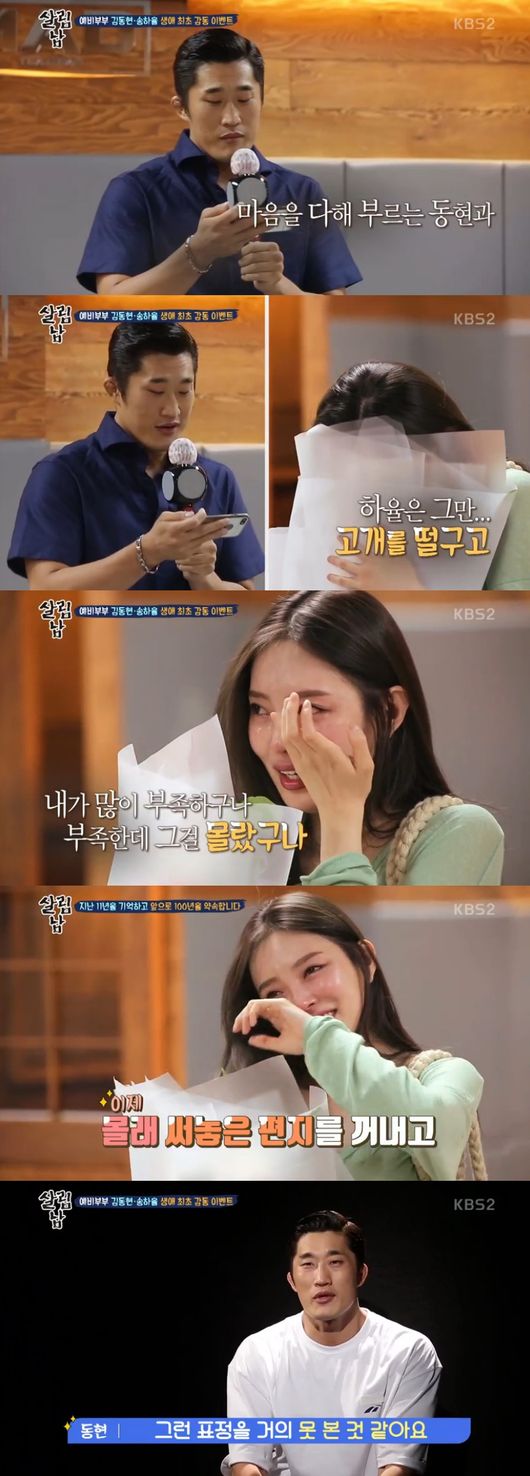 동현은 조심스럽게 준비한 편지를 읽었다. 동현은 "우리 둘만의 경기 시간은 100년이다"면서 만난지 11년 동안 때로는 심하게 다투었지만 그 이상 무언가가 있었다고. 헤어져선 안 되는 큰 끈으로 연결되어 있다고 했다.