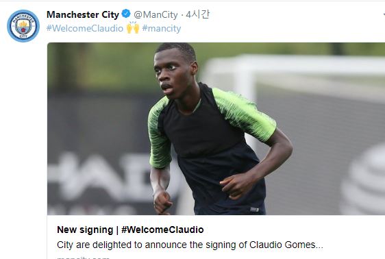 맨체스터 시티가 프랑스 신성 클라우디오 고메스(18)를 품에 안았다.
