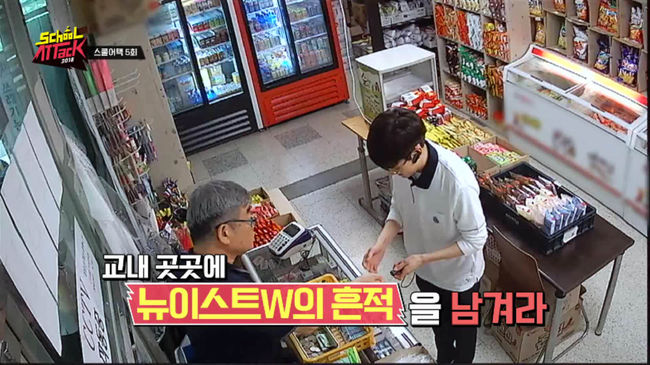 먼저 JR과 렌은 학교 계단에 붙여져 있는 뉴이스트W의 가사 팻말 앞에서 인증샷을 찍고 새로운 가사 팻말을 부착하는 미션을 부여 받는다. 또 아론은 ‘매점 털기’ 미션을 수행한다. 아론은 매점 아저씨와 첫 대면 임에도 불구하고 “평소 아저씨 팬이다. 3년 동안 감사했다”며 너스레를 떨었고 매점 앞에서 ‘아이스크림’까지 먹는 모습을 보이며 고난도 미션을 즐긴다.