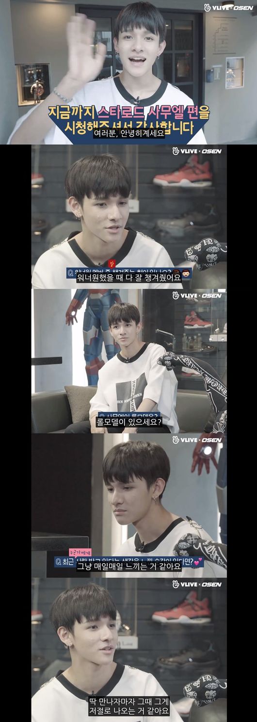 함께 '프로듀스 101' 시즌2에 출연했던 워너원 멤버들에 대해서도 언급했다. 사무엘은 가장 잘해준 멤버들에 대한 질문에 "'프듀2' 했을 때 다 잘 챙겨줬다. 내가 두 번째로 막내여서 다 잘챙겨줬다. 현재 워너원 멤버들 중에서 말하자면 다 잘해준다"라면서, "애정과 정말 잘 챙겨줬던 형은 강다니엘 형이랑 박지훈 형이 정말 잘해줬다"라고 말했다.