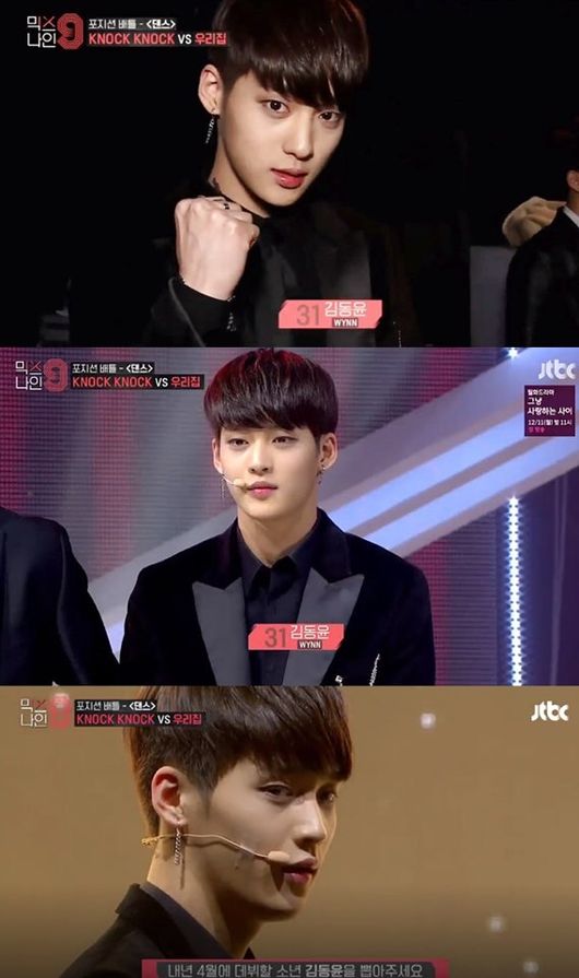 김동윤이 얼굴을 알린 건 올 초까지 방송됐던 JTBC '믹스나인'에서였다. 김동윤은 뛰어난 실력과 외모로 일찌감치 주목을 받았던 래퍼다. '믹스나인' 포지션 배틀에서 마.징.가 팀의 퍼포먼스 '우리집'으로 전체 1위를 차지하며 호평을 이끌어내는가 하면, 엔딩 요정으로 활약해 남다른 존재감을 과시한 바 있다.
