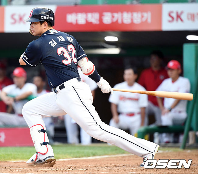 출루라는 것이 하루에도 3~4번을 할 수 있지만, 안 되는 날은 또 안 되기도 한다. 어떤 변수가 있을지는 알 수 없다. 다만 가능성은 점쳐볼 수 있다. 김재환은 7월에도 타율 4할6리의 가파른 상승세를 타고 있다. 여기에 11개의 사사구를 골랐다. 김재환을 상대로 대담한 정면승부를 벌일 투수는 많지 않다. 김재환이 침착하게 대처한다면 꼭 안타는 아니더라도 볼넷을 골라낼 확률이 높아진다.