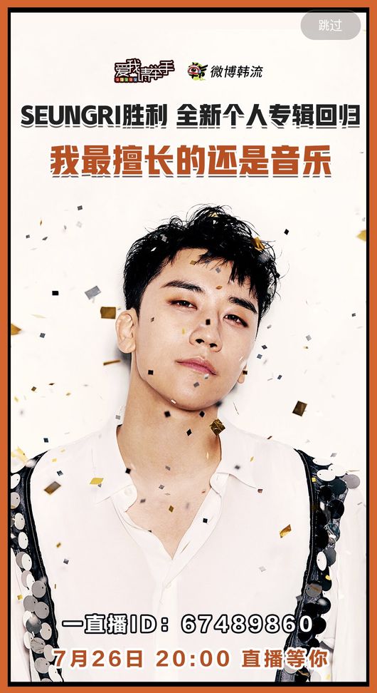 승리는 지난 26일 밤 9시(한국시간) 중국 최대 SNS 웨이보 방송을 진행하며 팬들과 특별한 만남을 가졌다. 방송을 시작한 지 2분만에 동시 접속자 수가 30만 명을 넘었고, 5분만에 42만 명을 넘어서며 선풍적인 인기를 끌었다.