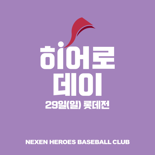 넥센히어로즈(대표이사 사장 박준상)는 29일 오후 6시 고척 스카이돔에서 펼쳐지는 롯데자이언츠와의 경기에 ‘히어로 데이’ 이벤트를 진행한다.