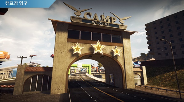 캠프는 헬기를 타고 이동하는 고공 점프대와 드리프트 연습 공간, 알파벳으로 영역이 구분된 넓은 주차장 등을 제공한다.