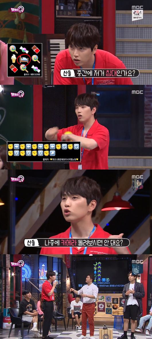 가수 산들이 허당스러운 매력을 보여주면서 '뜻밖의 Q'에서 맹활약을 했다.