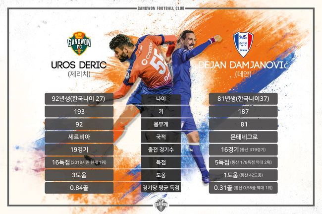 강원은 올 시즌 K리그 최고의 공격수로 평가받고 있는 세르비아 출신의 원톱 스트라이커 제리치가 최전방을 이끌고 있다.