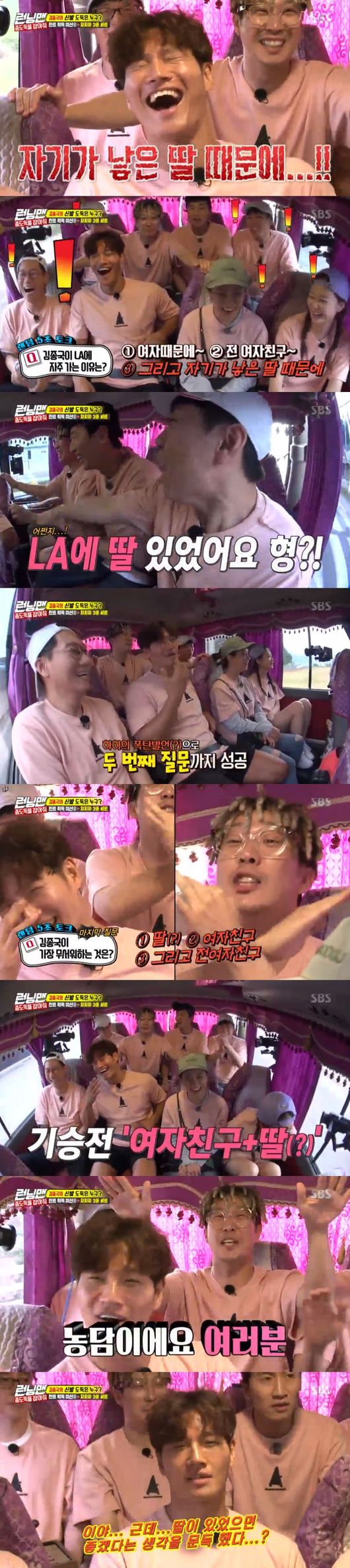 29일 오후 SBS 방송된 '런닝맨'에서는 하하가 랜덤 5초 토크로 '김종국이 LA에 자주 가는 이유는?'이라는 질문을 받았다.