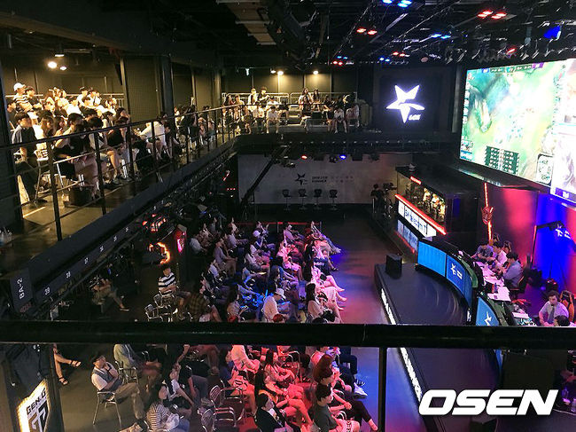SK텔레콤은 29일 오후 서울 서초 넥슨 아레나에서 열린 '2018 LOL 챔피언스 코리아(이하 롤챔스)' 서머 스플릿 6주차 젠지와 2라운드 경기서 386석의 좌석 모두를 가득 채웠다.