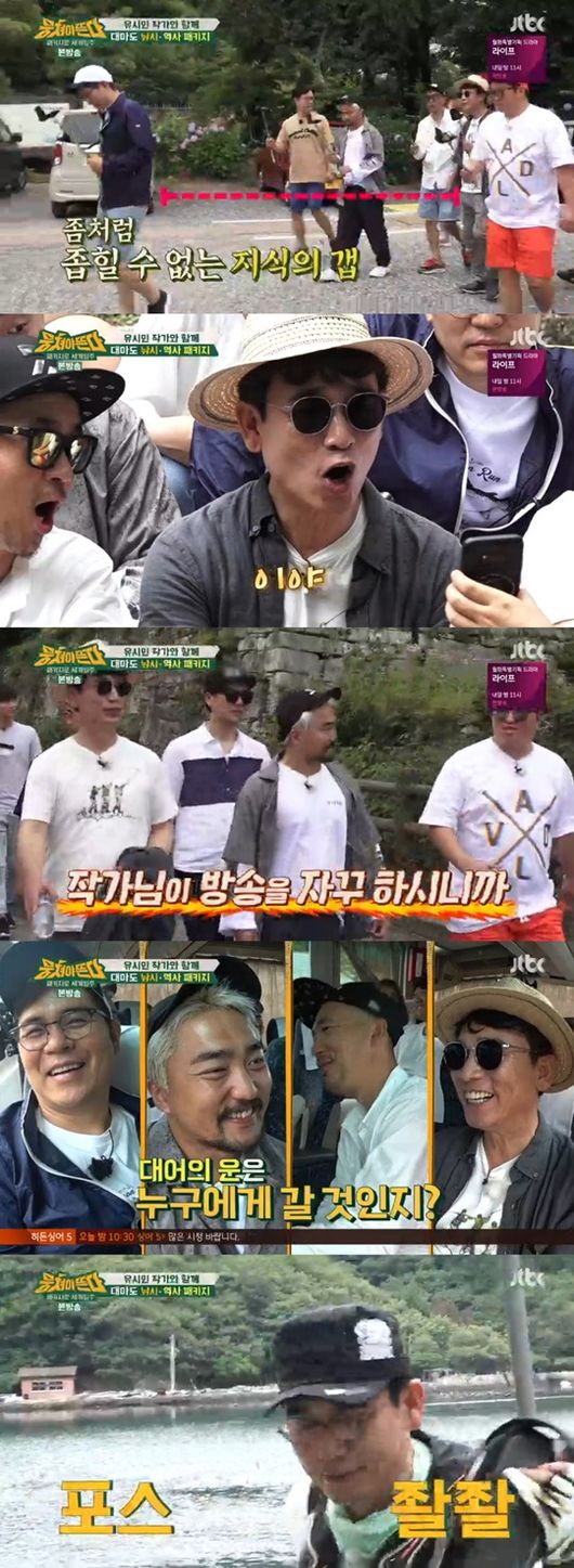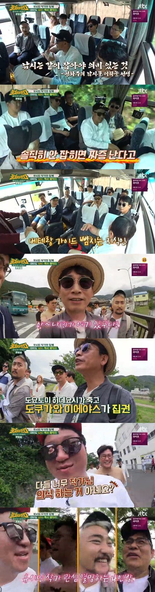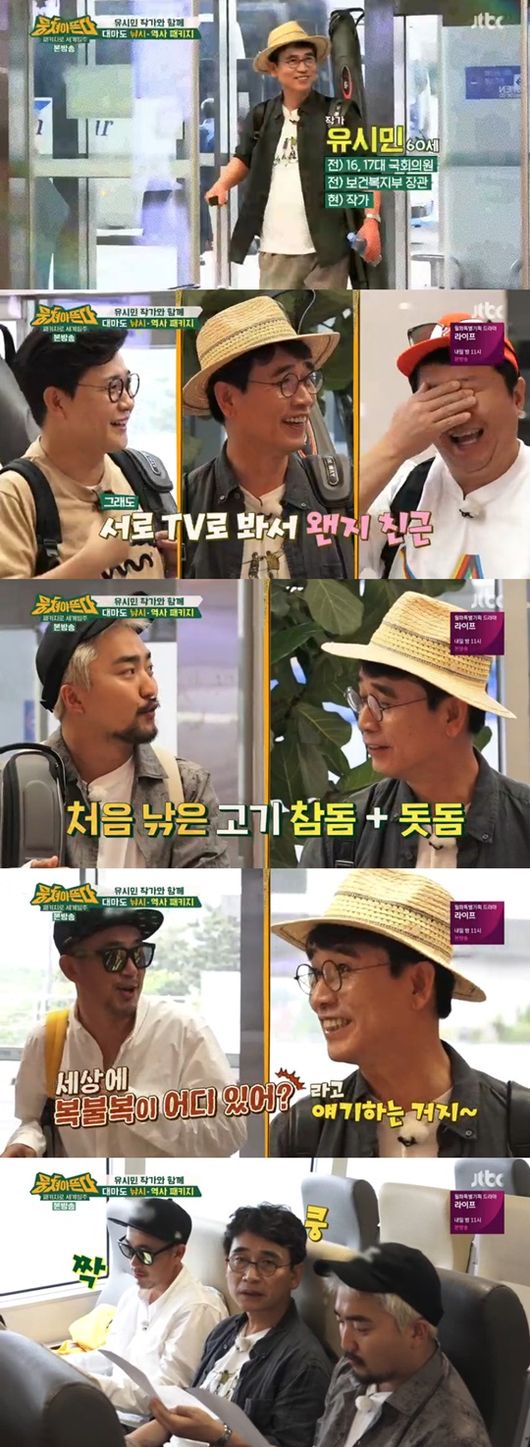 29일 오후 방송된 JTBC 예능 프로그램 '뭉쳐야 뜬다'에서는 유시민 작가와 김용만, 김성주, 정형돈, 유병재, 이하늘이 대마도로 떠나는 모습이 그려졌다.