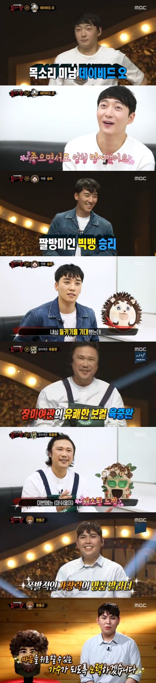이날 정체를 밝힌 이는 '우주선' 데이비드 오, '고슴도치' 승리, '커피자루' 육중완, 그리고 3연승을 해낸 '밥 로스' 한동근이었다.