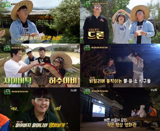 30일 저녁 8시10분 tvN 예능 ‘풀 뜯어먹는 소리’ 6화가 방송된다. ‘풀 뜯어먹는 소리’는 가진 게 없어도 행복한 마음대농 16세 중딩농부 한태웅과 가진 건 많아도 행복하고 싶은 마음소농 연예인 4인방이 시골에서 함께 생활하면서 작은 행복을 찾아가는 본격 시골 삶큐멘터리 프로그램이다.