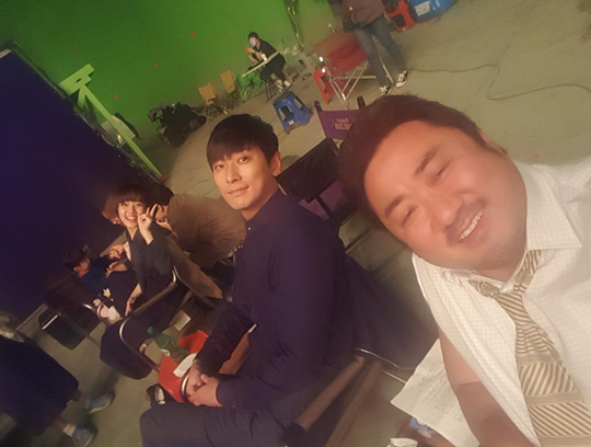 사진에는 마동석이 김향기와 함께 촬영장에서 밝은 미소를 짓고 있는 모습과 잠시 앉아 쉬고 있는 주지훈 옆에서 밝게 미소 짓고 있는 마동석의 모습이 포착돼 있다.