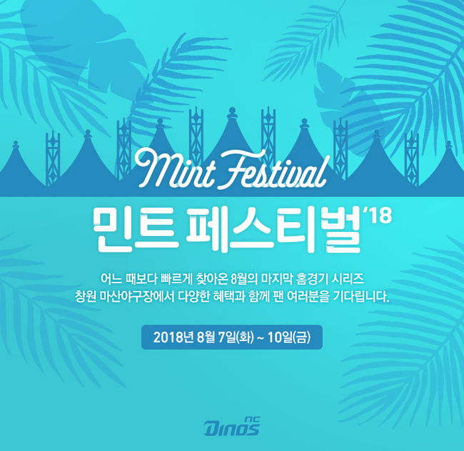 NC 다이노스가 해마다 여는 여름 축제 '민트페스티벌'이 내달 7일부터 10일까지 창원 마산야구장에서 진행된다. kt 위즈, SK 와이번스와 2연전씩 총 4경기가 열리는 홈 시리즈다.