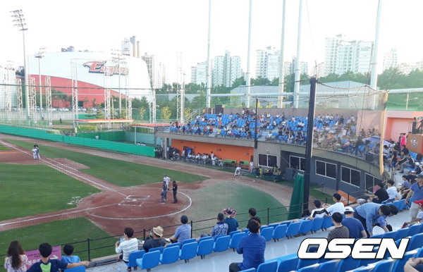 평일에 섭씨 33도로 무더운 날씨였지만 서머리그의 인기도 뜨거웠다. 관중 수용 인원 800여명인 서산구장에는 이날 약 300여명의 관중들이 찾아왔다. 남녀노소 가족 단위 관중들이 주를 이뤘다. 한화 관계자들도 놀랄 정도였다. 1~2군 선순환으로 상승세를 타고 있는 한화의 인기를 실감케 하는 대목.