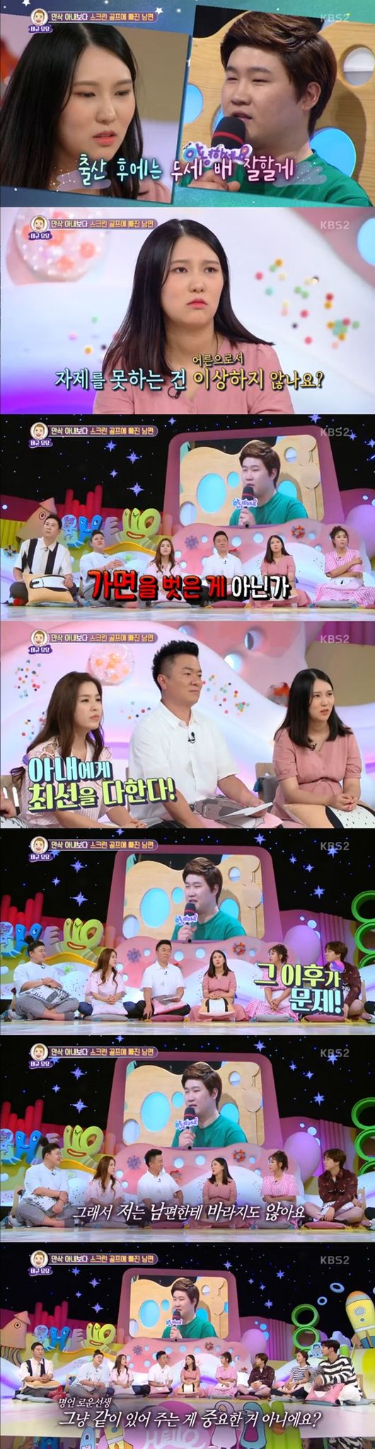 '안녕하세요'에 등장한 만삭 아내가 골프사랑에 빠진 남편이 고민이라고 토로했다.