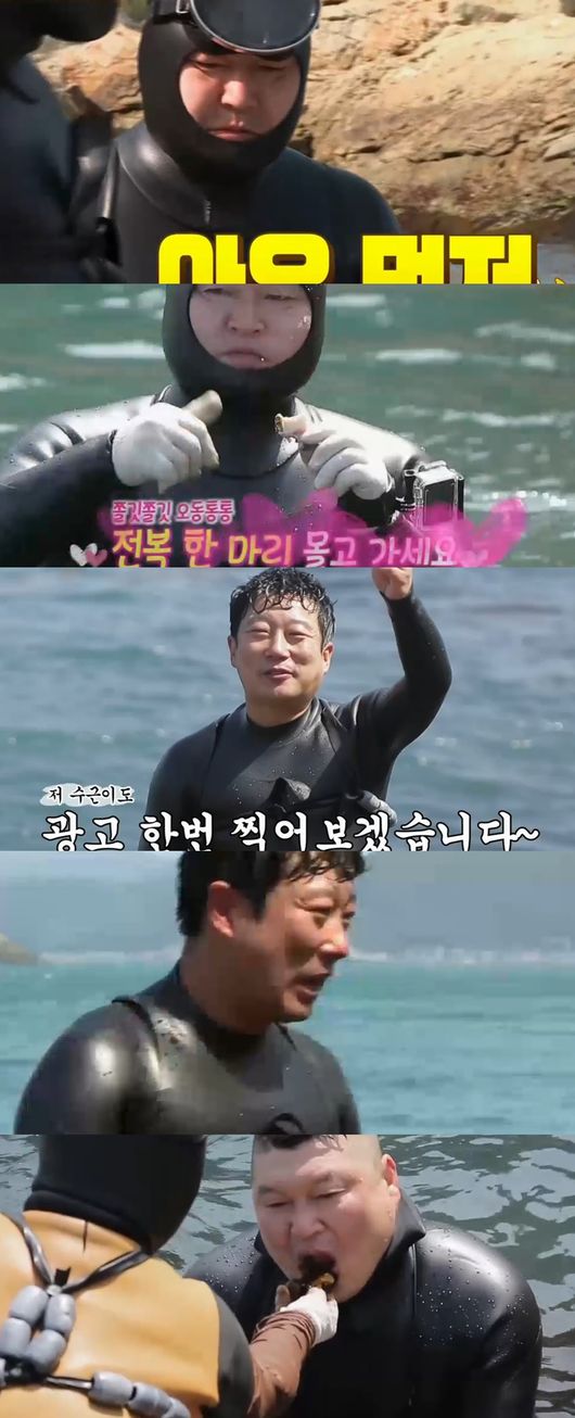 강호동이 "전복, 내가 간다"를 외쳤다. 단박에 잠수해서 전복 사냥에 성공했다. 이수근은 초반 잠수에 힘들어했지만 이내 뿔소라를 따올렸다.