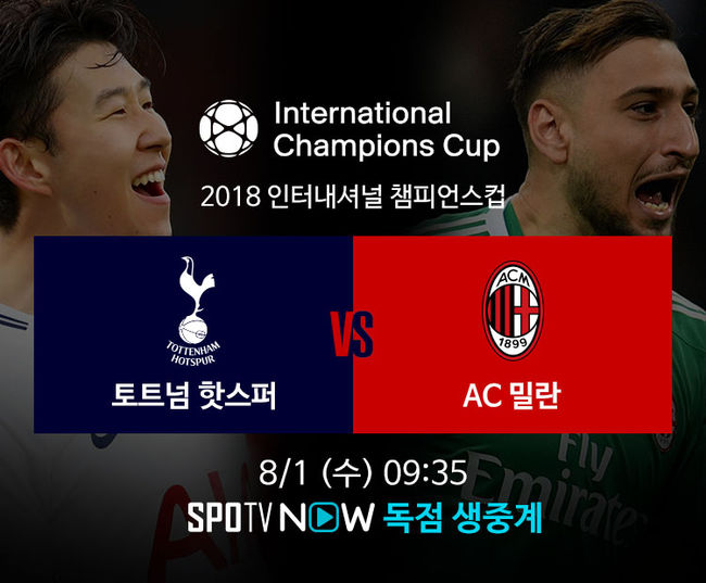 토트넘과 AC밀란의 2018 인터내셔널 챔피언스컵(ICC) 경기가 오는 8월 1일 오전 9시 30분(한국시간) 펼쳐진다.