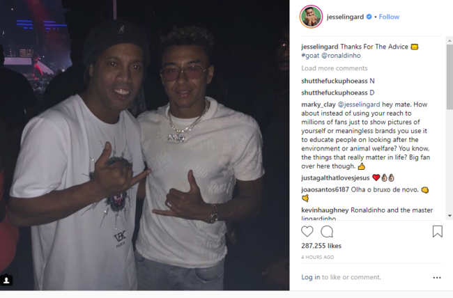 영국 '데일리메일 온라인'은 31일(한국시간) "제시 린가드가 휴가 도중 자신의 '우상' 호나우지뉴와 만나 여러 가지 조언을 얻었다"고 보도했다.