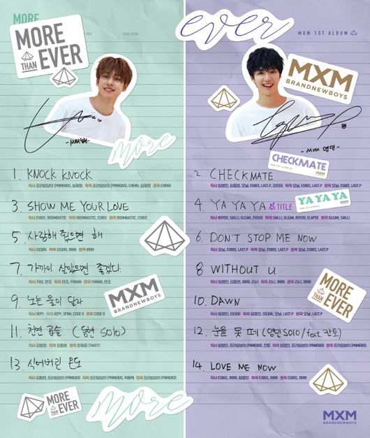 MXM의 첫 정규앨범 ‘MORE THAN EVER’의 발매 카운트다운이 시작되며 팬들의 기대감이 점점 고조되고 있는 가운데 오늘 정오를 기점으로 대망의 첫 정규앨범 트랙리스트가 전격 공개되어 화제를 모으고 있다.
