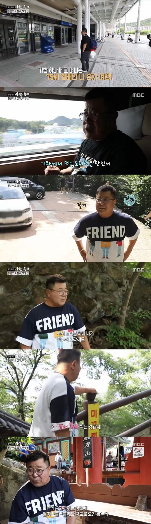 백일섭이 혼자 떠나는 배낭여행에도 도전장을 내밀었다. 백일섭은 난생 처음 KTX를 타고 떠나는 기차여행을 선택했다. 배낭하나 메고 기차역에 오른 그는 "처음이다"라며 설레는 모습을 보였다. 기차 안에서도 도시락을 까먹으며 소풍가는 아이처럼 한 껏 들뜬 모습을 보였다. 드디어 고향 여수에 도착했다. 늘 마중나오는 친구와 본격적으로 여행을 시작했다. 가족들은 여수를 떠나 없지만, 친구들과 추억을 나누기 위해 왔던 것이다. 오랜만에 만난 친구들과 옛날 이야기 보따리를 풀며, 웃음을 나눴다. 혼자서도 인생을 즐길 줄 아는 백일섭의 유쾌한 싱글 라이프였다.