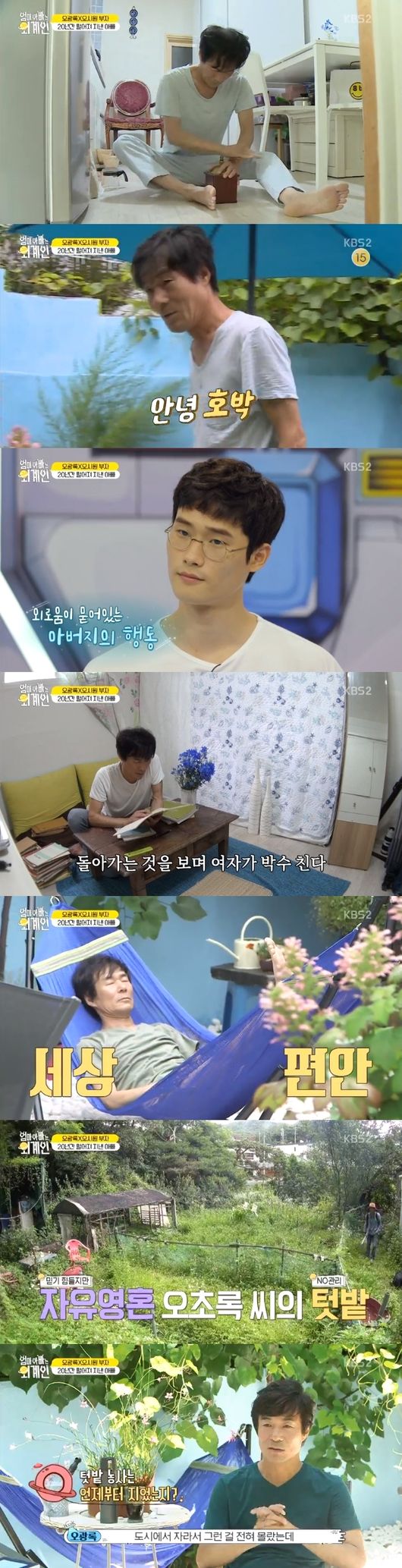 오광록은 "안녕 호박"이라고 인사를 건네며 사물을 의인화하는 모습을 보여줬고, 아들 오시원은 "나도 저런다"며 닮은 점을 언급했다. 정신건강의학과 전문의 양재웅 원장은 "사물을 의인화하는 것은 현실을 확장하는 것이다. 개성형 성격을 지녔고, 자신만의 라이프 스타일을 고수하는데, 외로움이 묻어있는 행동이다"고 진단했다.