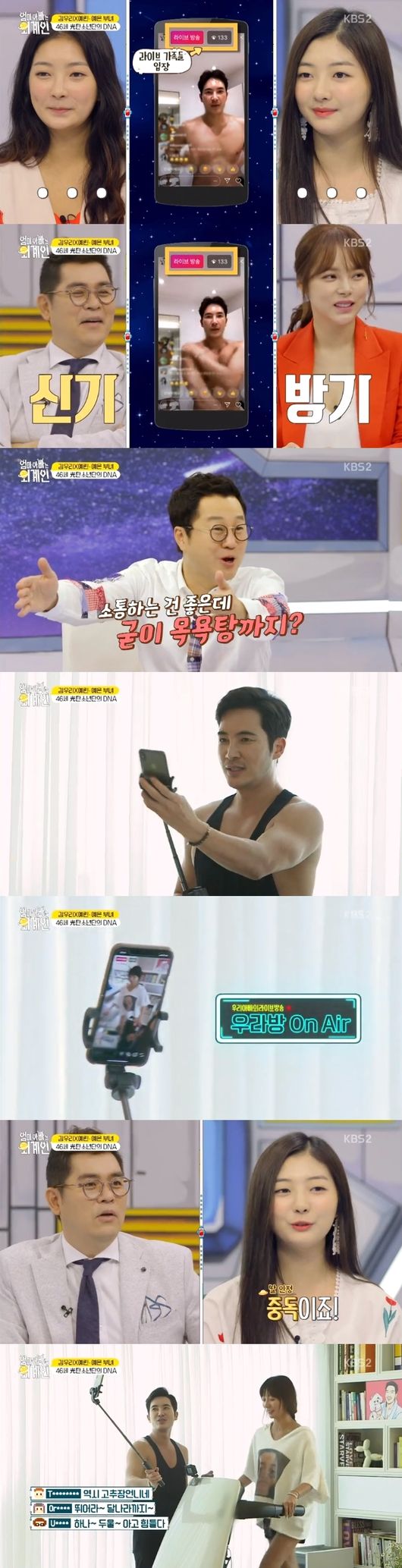 김우리는 SNS 라이브 방송을 진행했고, 그는 "SNS는 같이 살지 않는 가족 같다. 뭔가 시그널이 통하는 큰 가족 같은 느낌이다"고 설명했다. 지상렬은 "하는 건 좋은데, 꼭 욕실에서 저런 걸 해야하느냐"며 이해하지 못했다.